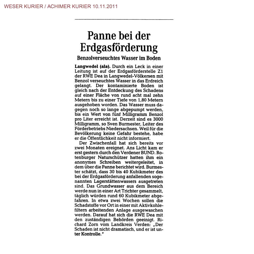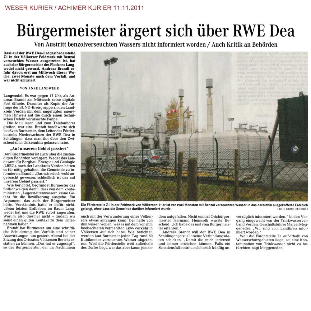 Bürgermeister ärgert sich über RWE Dea /Völkersen